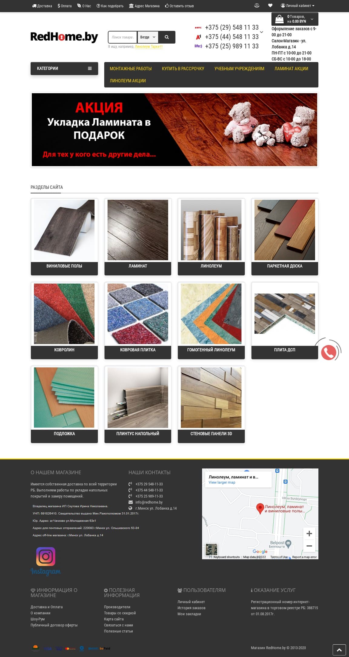 Главная страница » Работы сайты » Интернет магазин напольных покрытий redhome.by