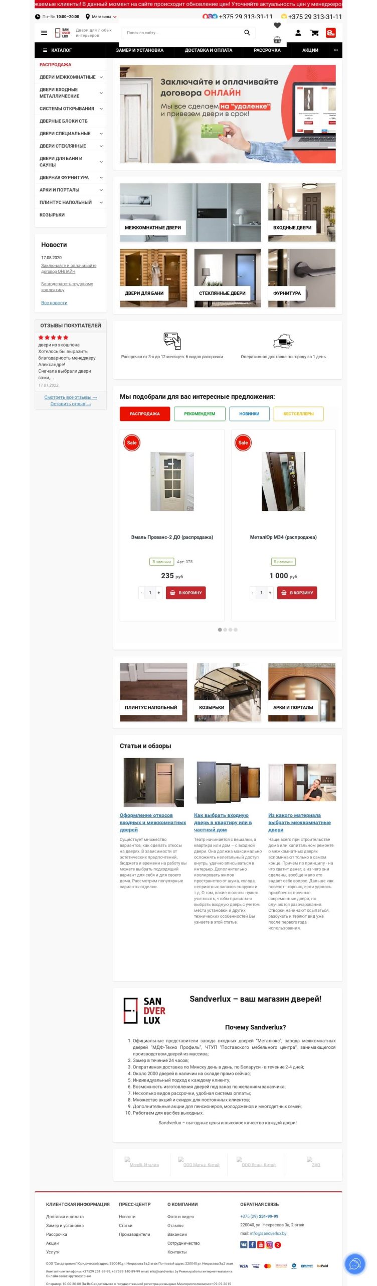 Главная страница » Работы сайты » Сайт для продажи дверей sandverlux.by